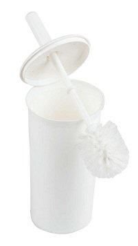 A white plastic coated toilet brush with matching holder